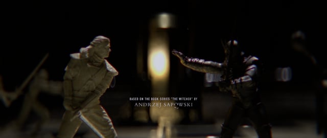 I knew I wanted to have two very contrasted fonts with only a subtle animation on it. Having it brake as if hit by a blade fit with the Witcher’s theme well and gave it just that touch of animation I was looking for.
